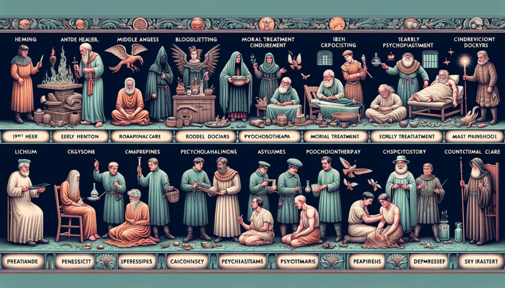20. Yüzyılın Başları : Sigmund Freud ve diğer psikanalistler, depresyonun psikolojik nedenleri etrafında teoriler geliştirdiler. Sonuç olarak bu teoriler, tedavi olarak psikoterapiyi gündeme getirdi. Bu arada, 1940’ların sonlarında lityumun keşfi, modern psikofarmakolojinin başlangıcı oldu.