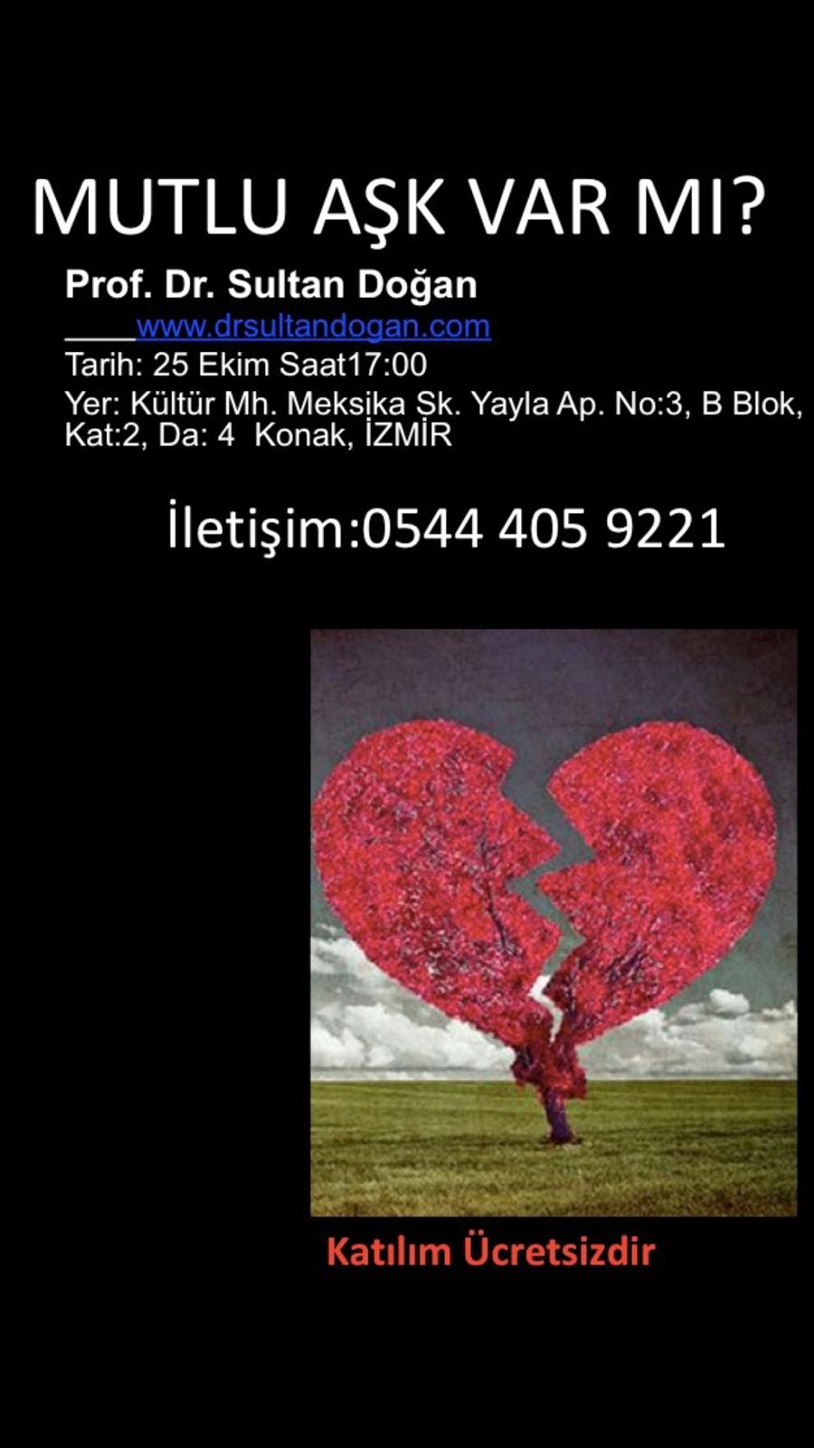 Prof. Dr. Sultan Doğan tarafından düzenlenecek “Mutlu aşk var mı?” konulu interaktif toplantıya davetlisiniz.